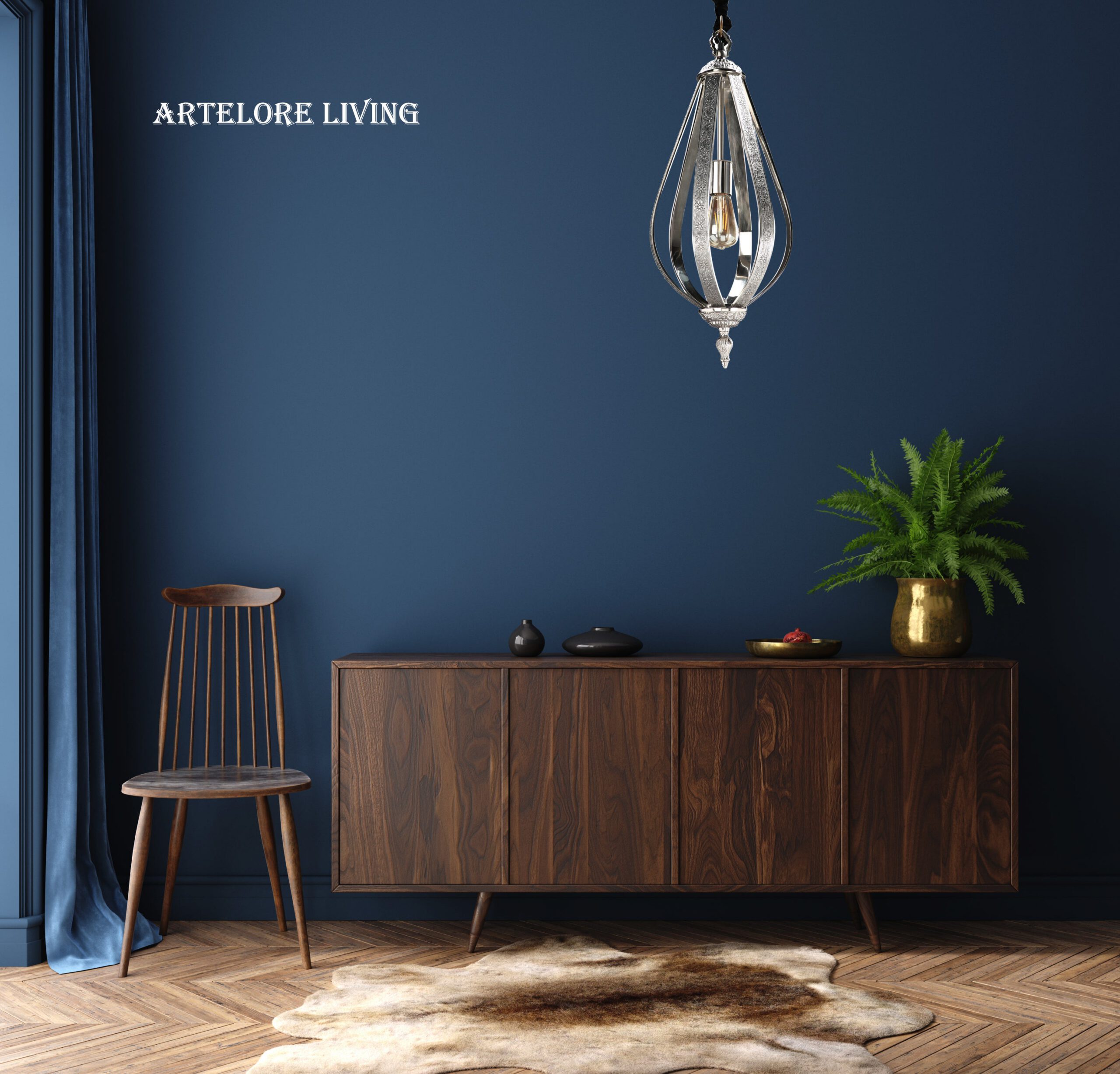 The very beautiful aluminium made, emboss surface and antique nickel pendant light for all the high-end interiors and the exteriors. The drop-shaped pendants hanging boasting graceful proportions, the aluminium drop pendant striking cluster of light above a table, bed or island. Designed for high-end interiors. It is nicely made piece and similar pieces from collection are part of our decor. Material – Aluminium / Iron Size – L 11 X W 11 X H 26 Inches Finish – Nickel Plated Bulb Recommended – E27 (Not Included) Wire Length – 1.5 Meters Chain Length – 1 Meter (Iron) Disclaimer There Might Be Little Shade Variation Between Actual Product And Image Shown On The Screen Due To Photography Effect. |