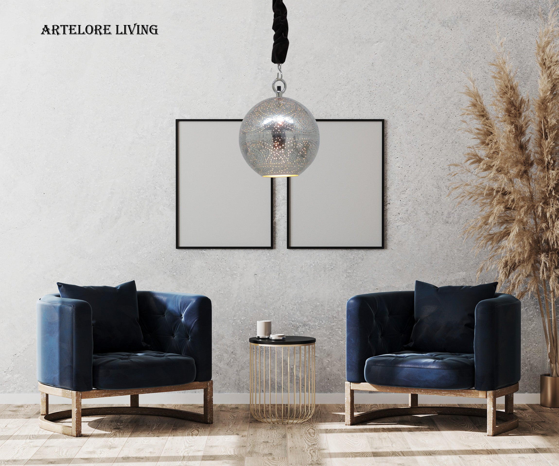 Add a great decor idea to your interior with handcrafted nickel plated metal made ceiling lamp. Today, they are a popular choice among designers due to their style and overall craftsmanship. Design by rural artisans. Having a good nickel finish with a beautiful reflection. Material – Aluminium / Iron Size – L 10 X W 10 X H 13 Inches Finish – Nickel Plated Bulb Recommended – E27 (Not Included) Wire Length – 1.5 Meters Chain Length – 1 Meter (Iron) Disclaimer There Might Be Little Shade Variation Between Actual Product And Image Shown On The Screen Due To Photography Effect. |