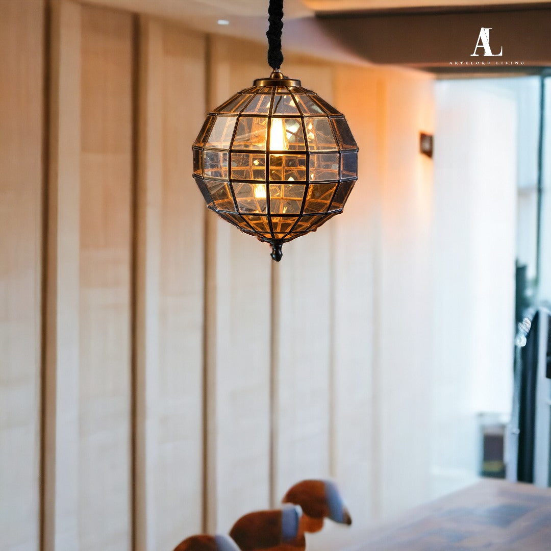 This brown glass ball pendant light (18.5″x18.5″x23″) is a true combination of color. This fixture emanates fantastic hints that reflect individualistic style. Antique brown glass lighting design is a manufacturer of both contemporary and nostalgic lighting. everything is handmade with delicate care and special attention to detail.