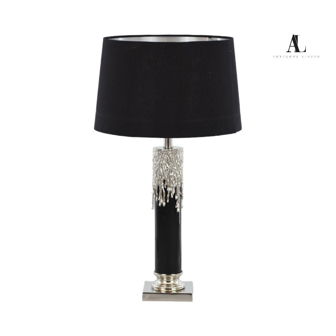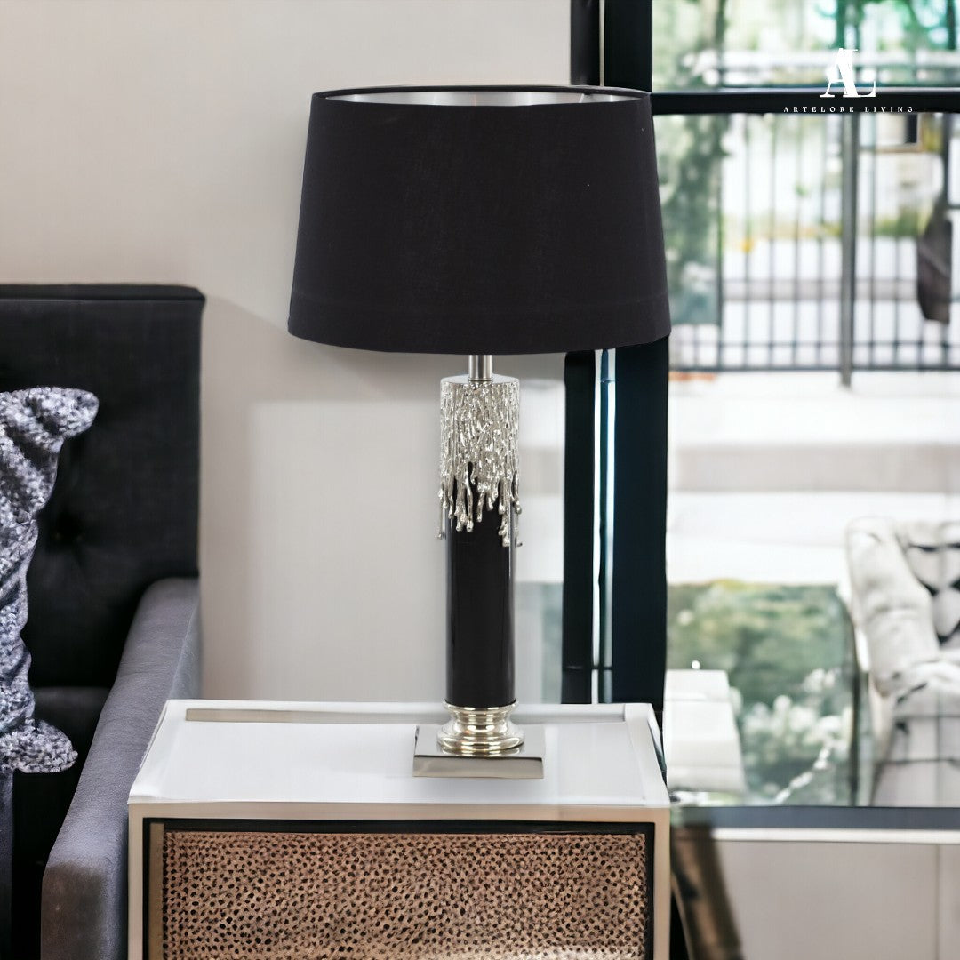 Elevate your interior with the Aurora Drip Table Lamp, a stunning blend of modern elegance and artistic flair. Featuring a lustrous gold “drip” effect cascading over a sleek black cylindrical base, this lamp exudes luxury and sophistication. The classic white fabric shade diffuses light beautifully, making it perfect for bedrooms, living rooms, or study spaces. A striking statement piece from Artflore Living that brings warmth, texture, and timeless style into any space.
