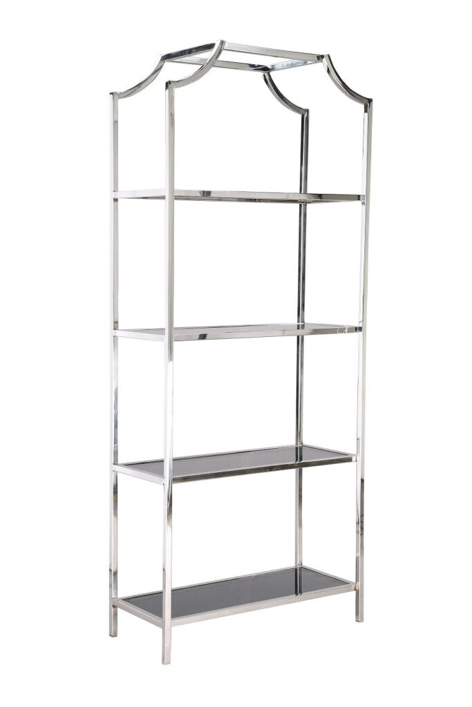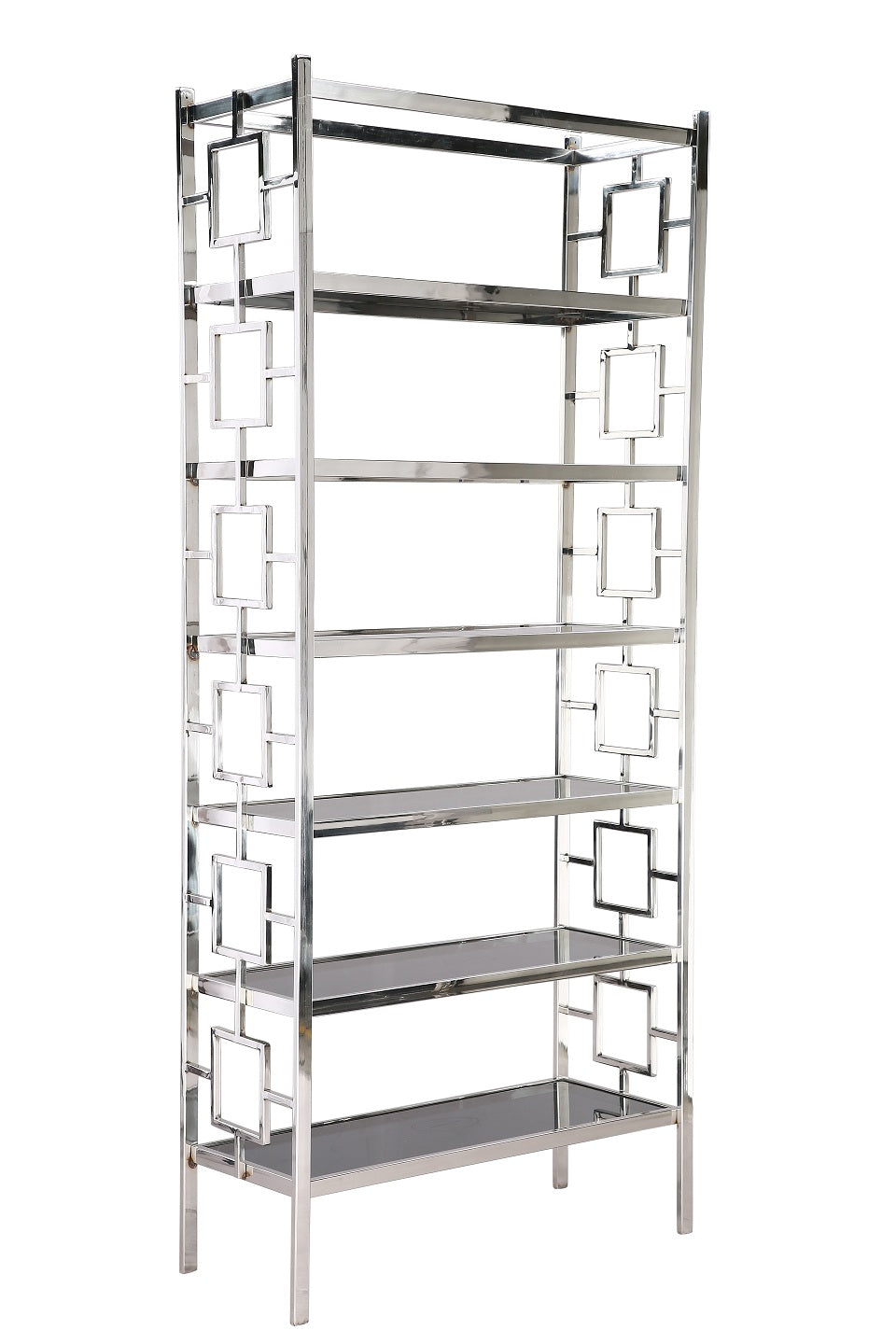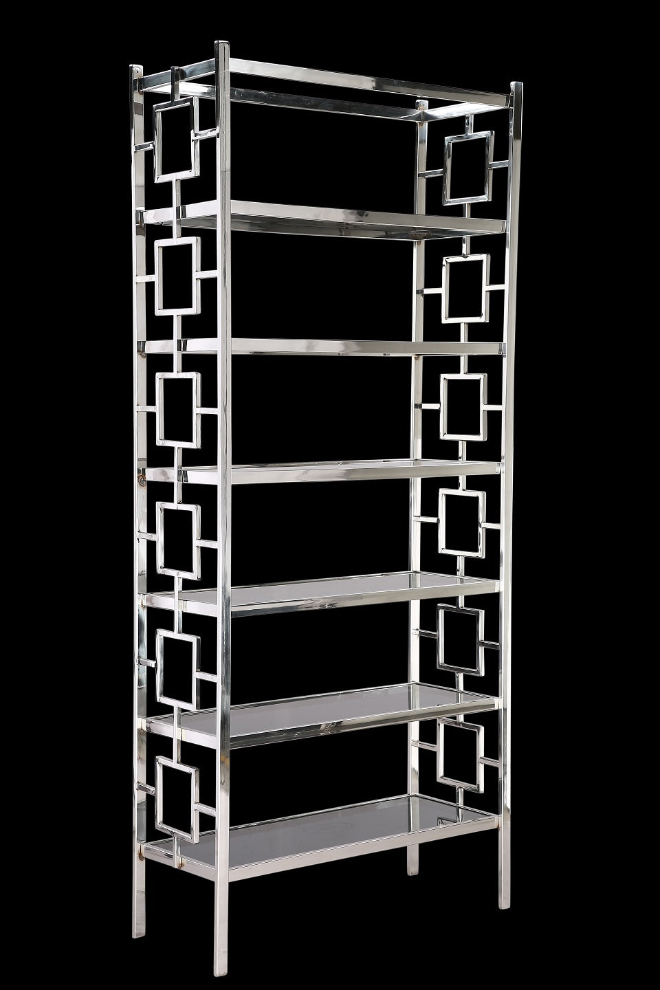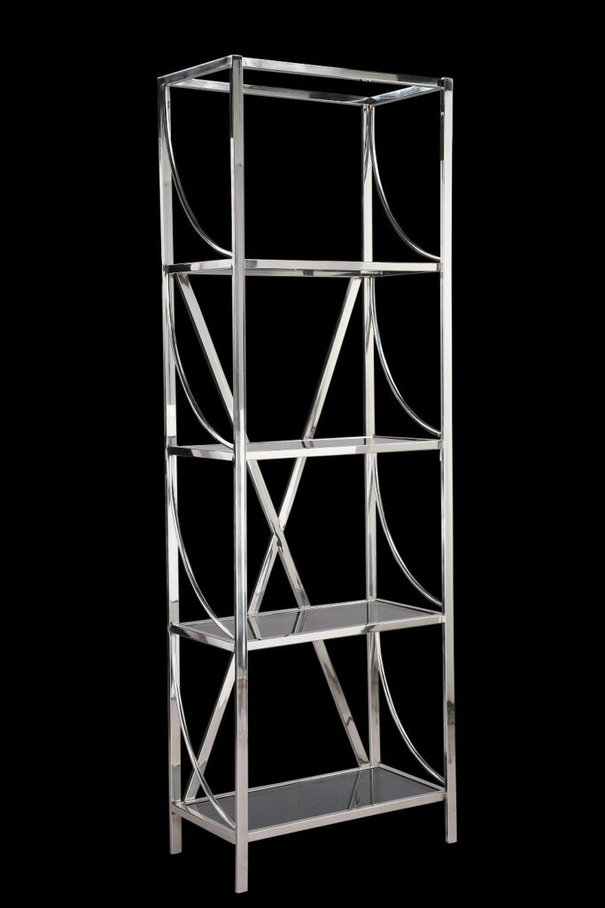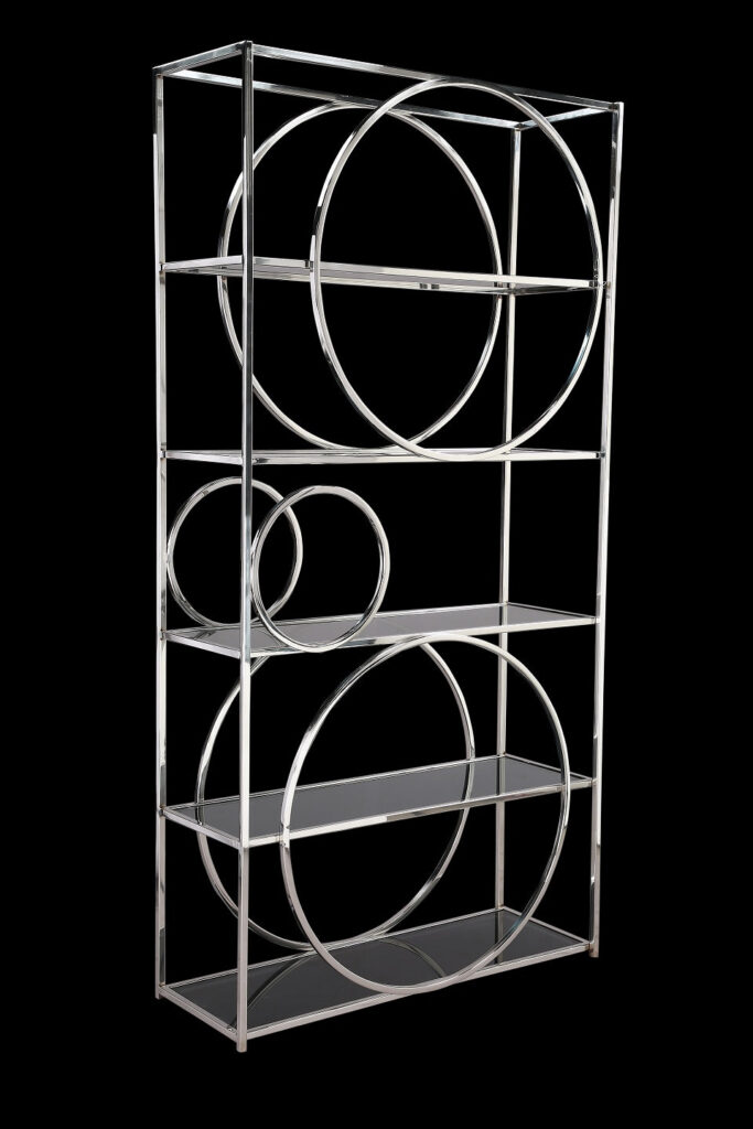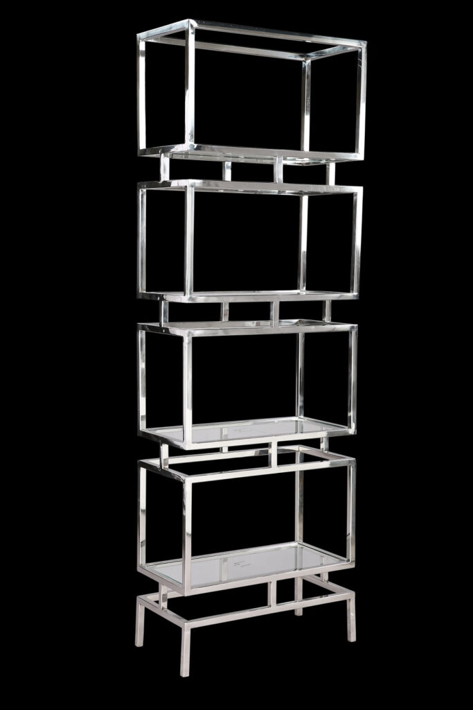 This beautiful rack (31″x13″x72″) is available in steel frame fitted with glass shelves to suit any existing decor, this bookcase features a streamlined modern steel design with a flat surface ideal for displaying books, houseplants, photographs or art, among other household items. There are five internal cubes that are as well-suited to storing files, records, a media library, toys, and more, as well as books. It is made of manufactured steel and glass.