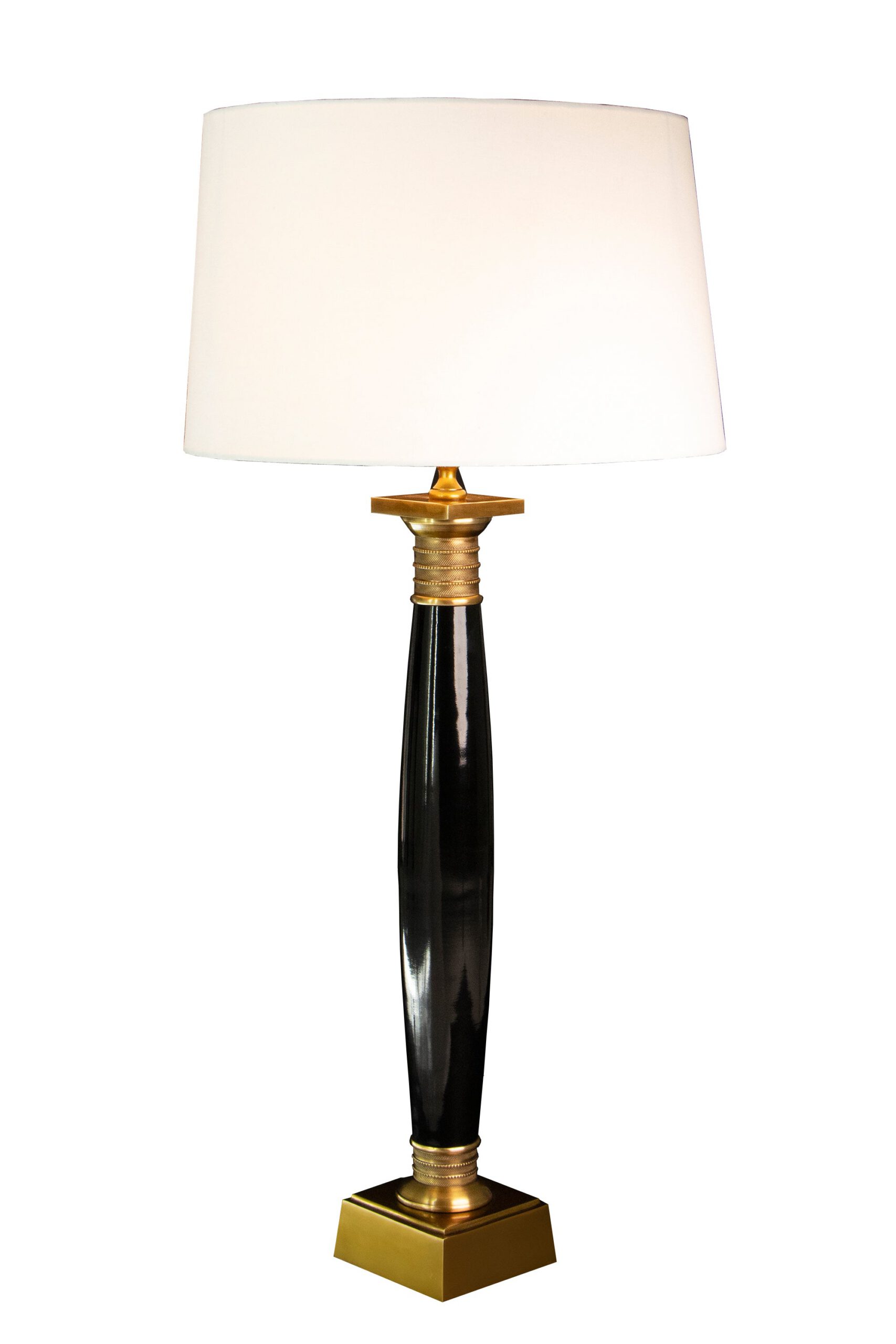 Brass and aluminum manufactured table lamp (4″x4″x30″). An inexpensive yet elegant dark black powder coated and brass antiqued table lamp. It’s an elegant contemporary style ensconce which unknowingly becomes the spotlight of the entire living area. It has tapper shade that illuminates its beauty even more. Keep it on a simple accent table or a corner stool and let lamp do the rest. These lamps are a rage around the world currently and are used by top architects and interior designers in their projects.