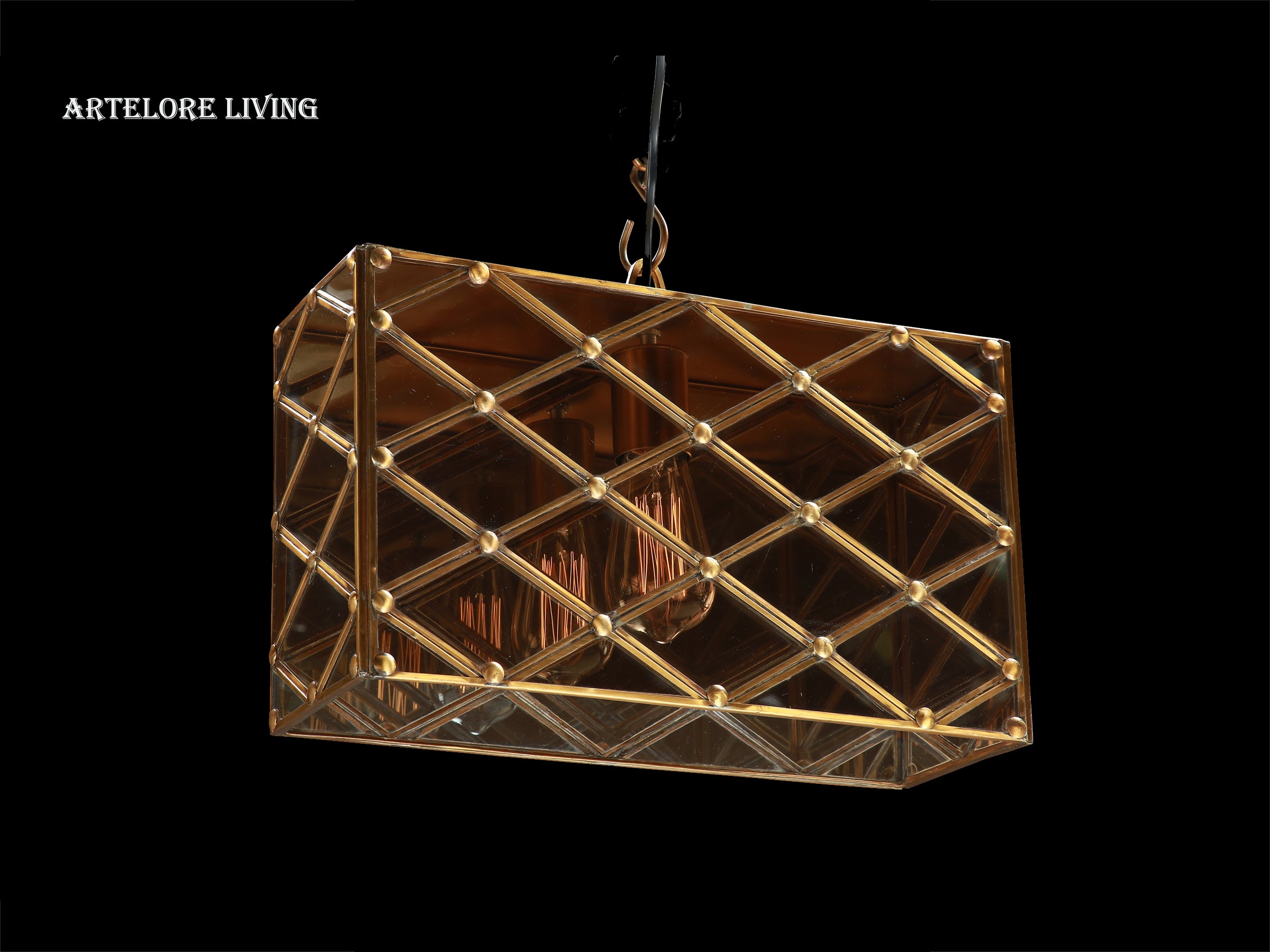 Brass And Brown Beveled Glass Pendant Light