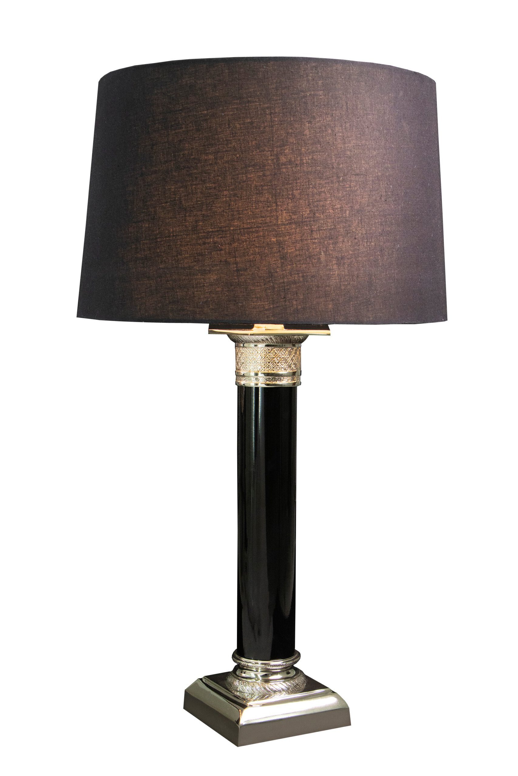 Light up your place with a classic design table lamp (6.5″x6.5″x22.5″). The table lamp is supported with a black powder coating and nickel plating and made from brass and iron. Perfect fit for your sitting space, this black colored lamp provides ambient light and warm glow. These lamps are a rage around the world currently and are used by top architects and interior designers in their projects. They also form a great gift for family or business associates. This beautiful table light is a great option to add in your beautiful house decorating accessories.