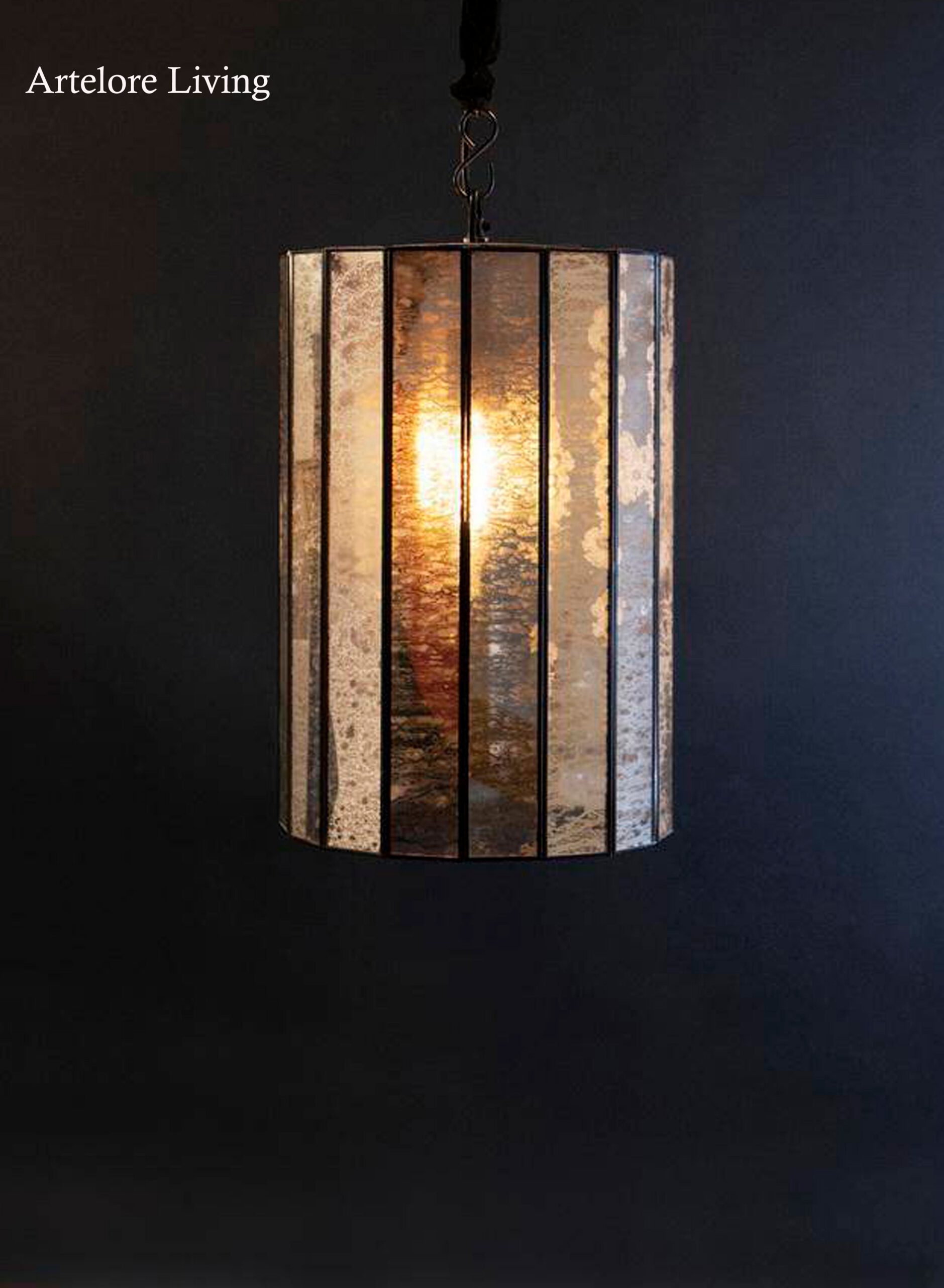 Brass And Mercury Glass Cylinder Pendant Light