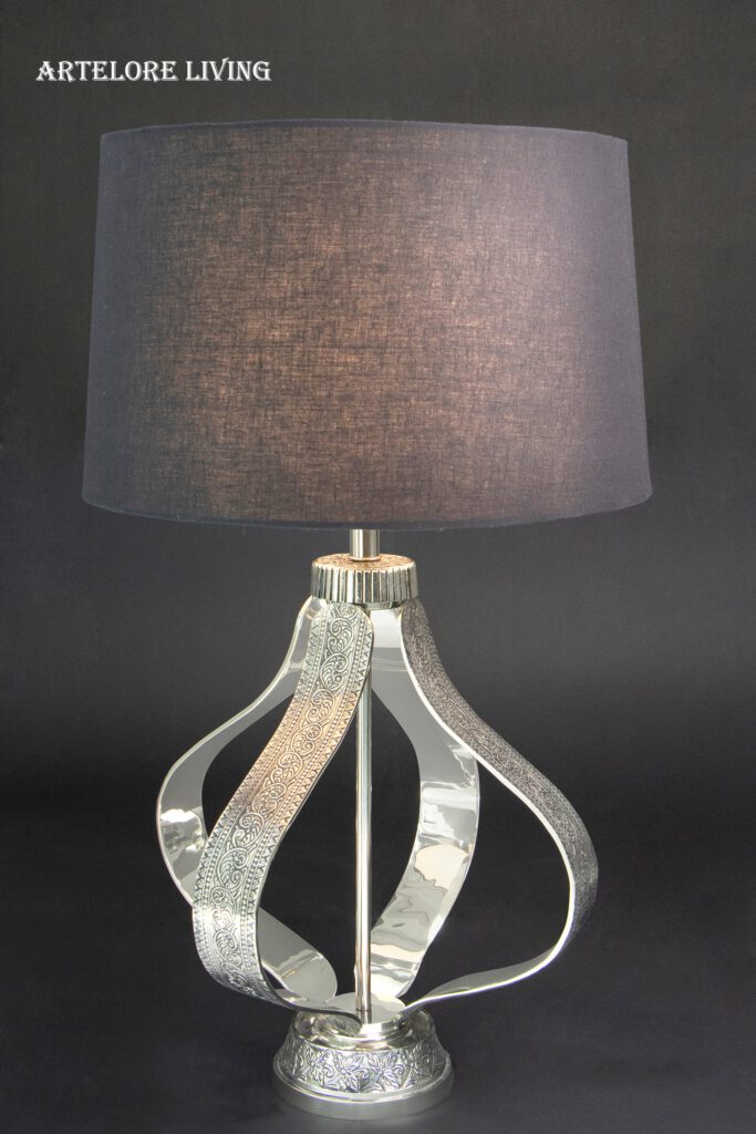 Brass and antique mercury glass manufactured beautiful table lamp (6x6x12 inches ). This table lamp makes for an excellent table decoration piece. These lamps are a rage around the world currently and are used by top architects and interior designers in their projects. They also form a great gift for family or business associates. This is undoubtedly a classic piece of a table lamp to put more stars to your already amazing interior. Base Material – Brass/Mercury Glass Shade Material – Cloth Switch Type – On / Off Plug Type – 2 Pin Round Plug Bulb Recommended – E27 (Not Included) Wire Length – 2.5 Meters The shade is included along with the lamp.