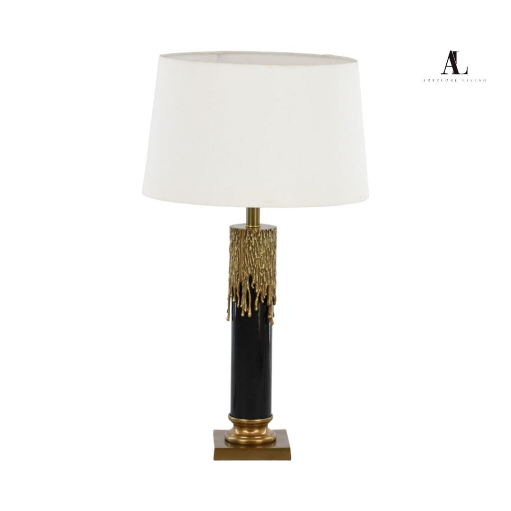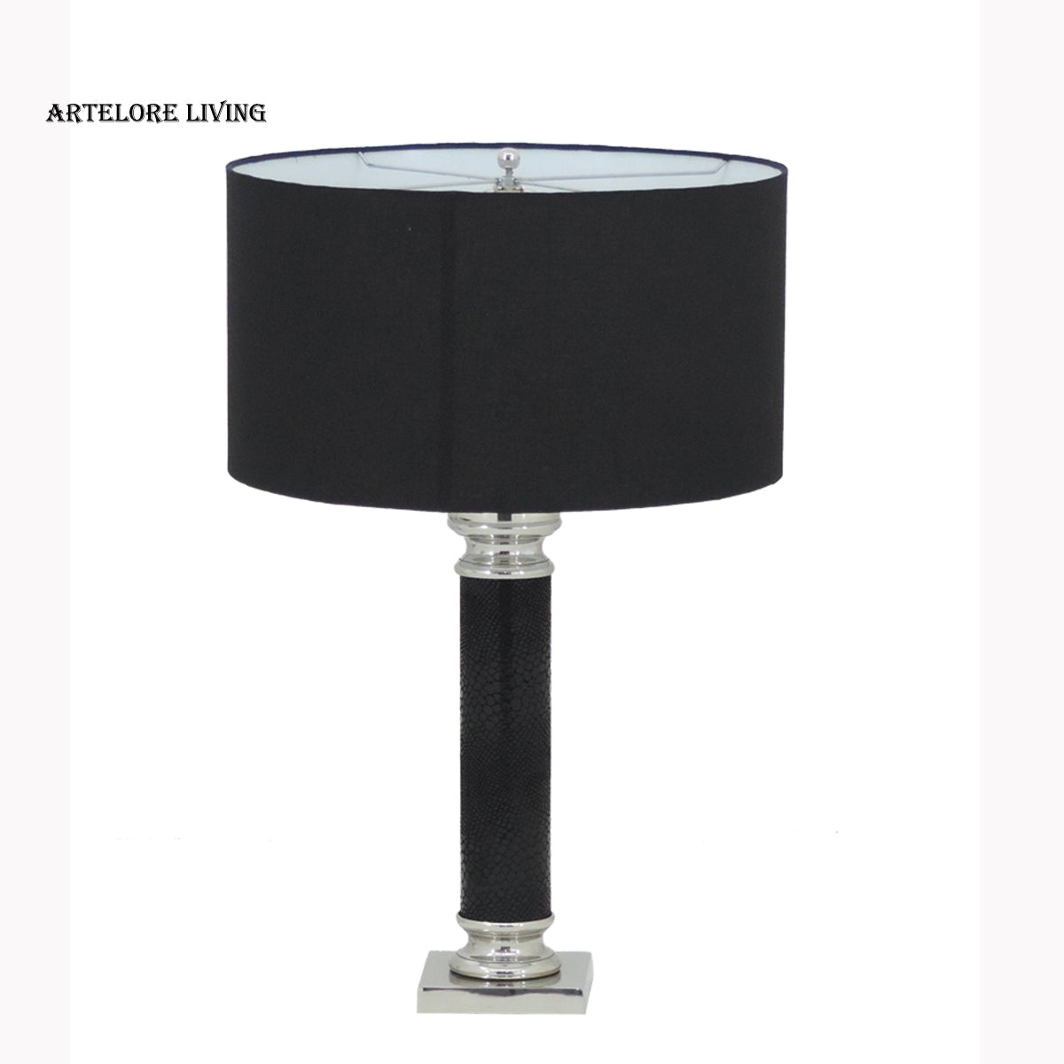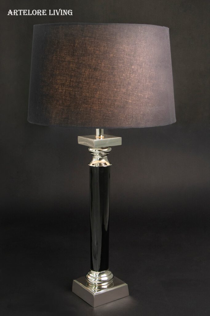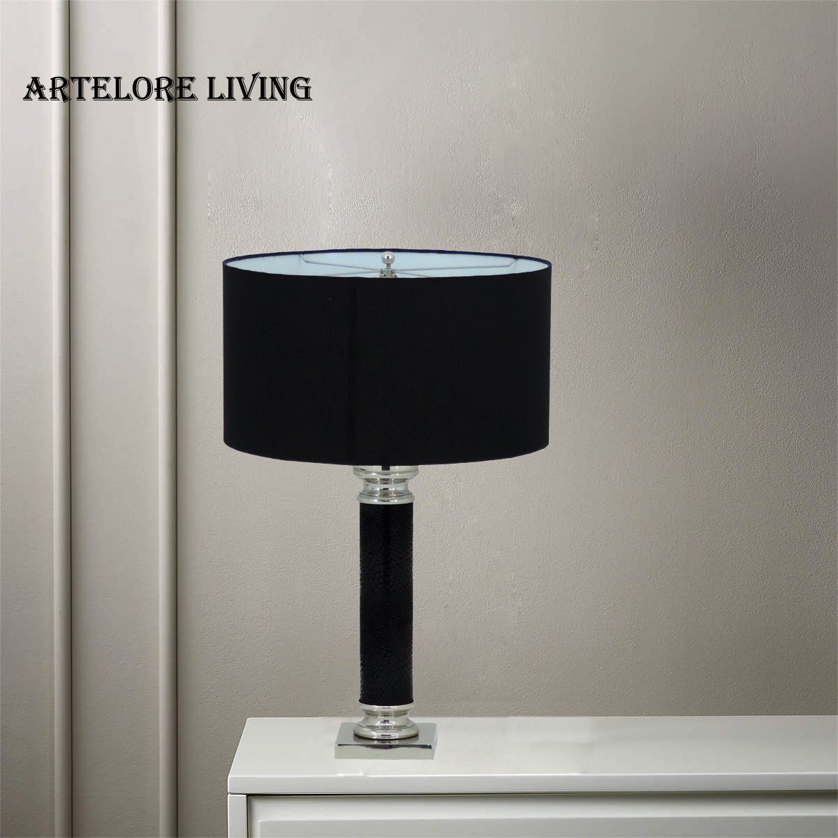 This beautiful lamp combines functionality with the classic glamour we’ve come to expect from the Artelore Living. This table light combines black leather and nickel plating that captures and reflects the light. Brass pattern is embedded in the base for added luxury. The black color shade features the distinctive classic design. Each elegant piece is lovingly handmade by expert craftsmen and will add a touch of glamour to your home.