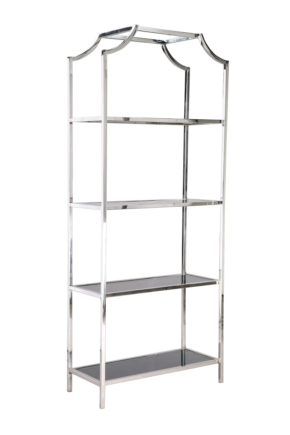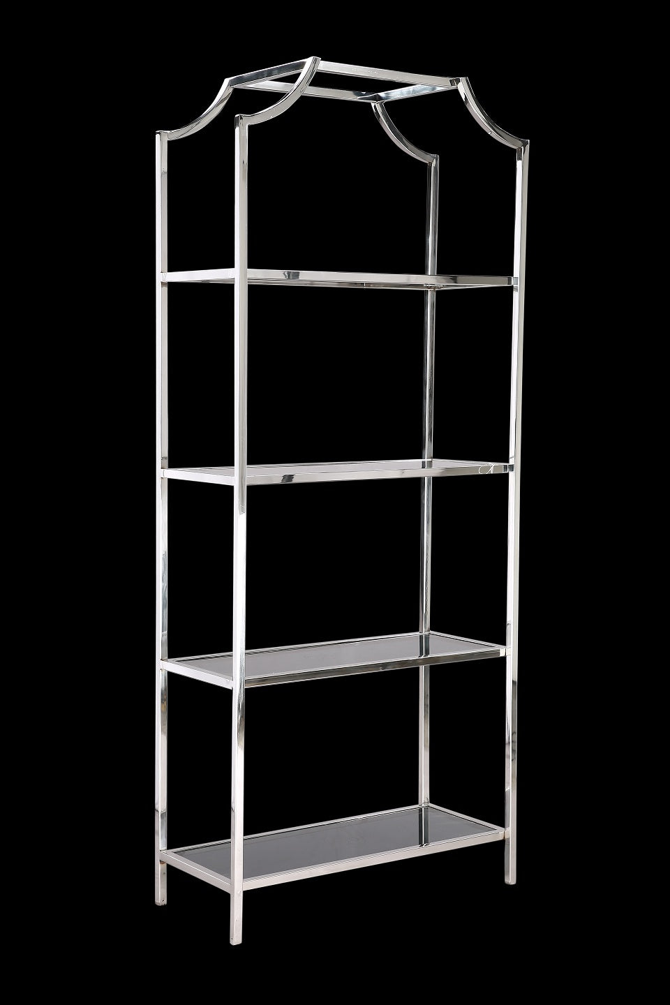 Sleek, large in size, and modern style book rack (30″x13″x72″), this one-of-a-kind piece makes a stunning selection for a living room bookshelf or dining room display case. With a snaking frame of polished stainless steel supporting four shelves made from glass, looks wonderful. The geometric design case provides plenty of space to display books, flowers, flatware, and more.