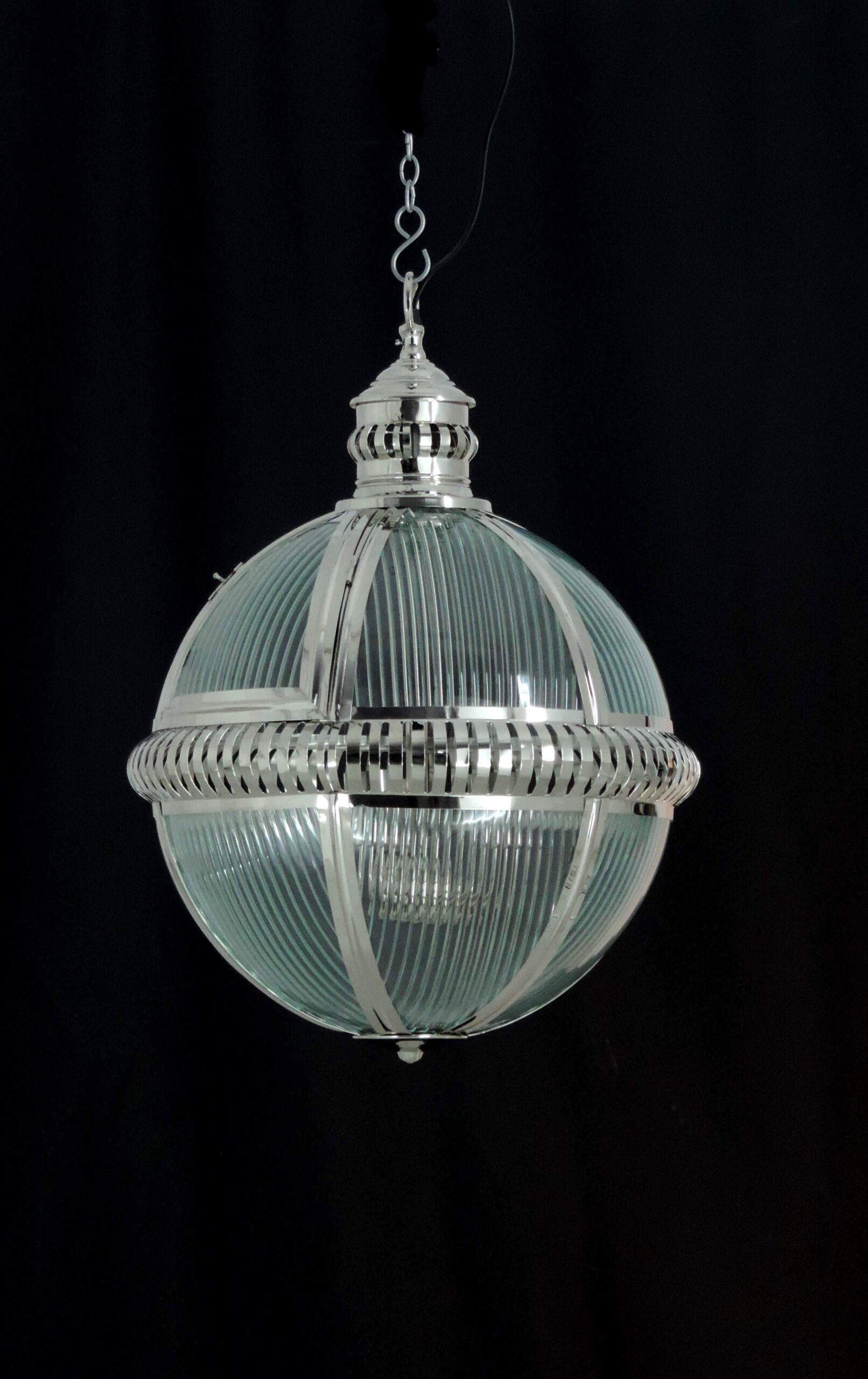 Simple and beautiful decorative, fluted ball pendant light (20″x20″x27″) that is medium in size, featuring nickel finish, brass made. This stylish fluted brass ball pendant will bring the luxuriant feel to your already beautiful home. The pendant is manufactured in high quality brass and finished in high quality nickel plating that offers a stylish look and is sure to inspire your interior living space. This lovely ball light is always been a good choice of high end interior designers.